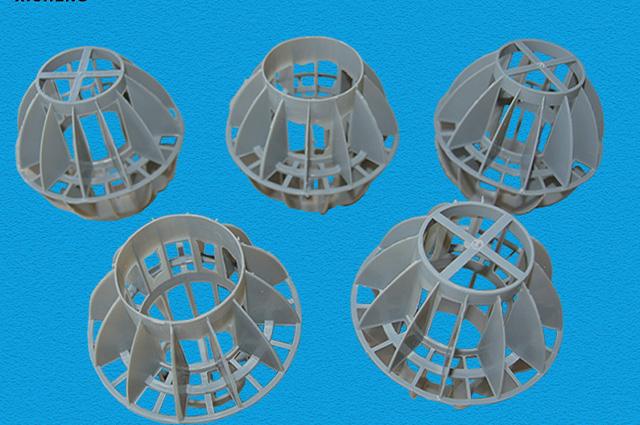 多面空心球中間鏤空結(jié)構(gòu)形成空隙大,不易被阻塞的特性。這種結(jié)構(gòu)在空氣洗滌、廢氣吸收、灰塵過濾等廢氣處理工程方面應(yīng)用,具有處理風(fēng)量大、阻力小的特點。由于多面空心球的空隙中有較高的滯液量,可使塔內(nèi)液體停留時間長,從而增加了氣體與液體的接觸面積和接觸時間。