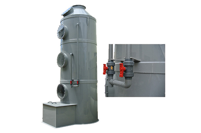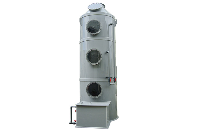 PPs洗滌塔結(jié)構(gòu):洗滌塔由除霧層、噴淋層、填料層、風(fēng)機(jī)、風(fēng)管、塔體、供水箱、供水泵等部分組成。